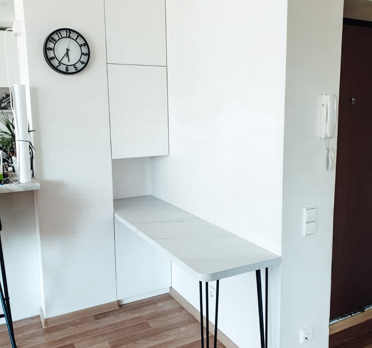 Įsirenginėjant naują būstą norėjau patogios darbo vietos. Ilgai ieškojau ir neradusi jokio stalo parduotuvėse, kuris atitiktų mano poreikius, kreipiausi į "Noriu Virtuvės" baldininkus, kurie jau buvo įgyvendinę ne vieną mano svajonė naujuose namuose.